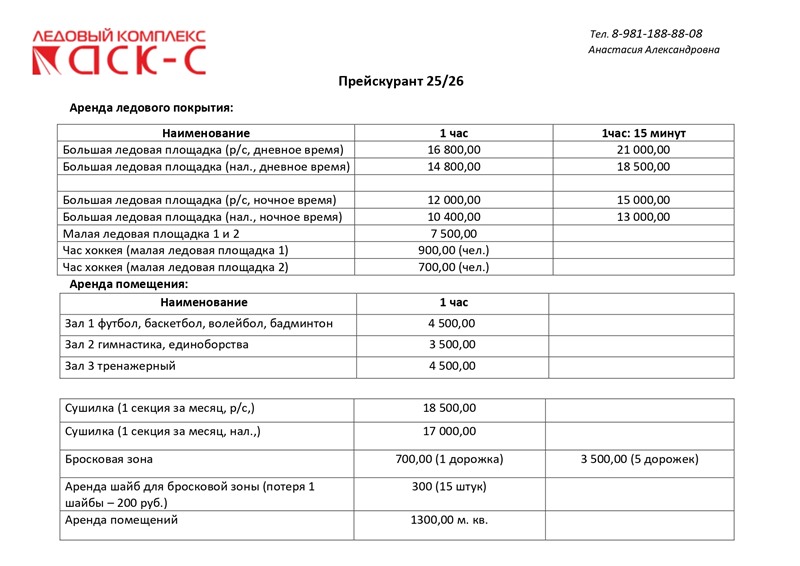 «Горячий лед» с 01.09 по 07.09 Цена 13000 наличными, 15000 по безналичному расчету.
