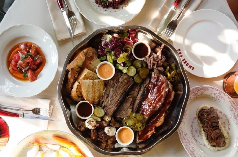 Бренд-шеф ресторана Алексей Каневский — единственный в России эксперт в техасском барбекю, искусству которого шеф обучался в Остине. Поэтому главный специалитет Smoke BBQ — брискет, говяжья грудинка, которая проводит в коптильне 14-16 часов.